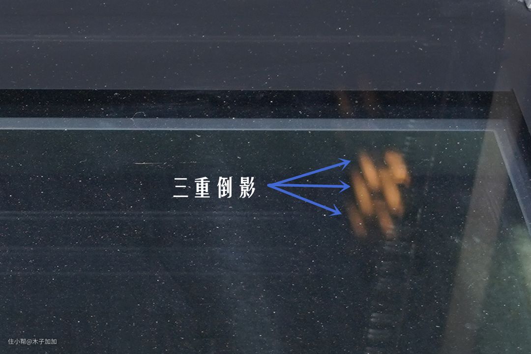 教大家一个识别玻璃门层数的小窍门:看玻璃门上倒映出来的灯光有几重影子,就代表采用了有几层玻璃。