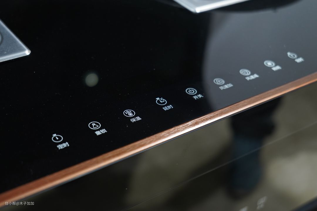整体黑色调为主的钢化玻璃面板颜值很能打,与现代厨房可谓百搭。
