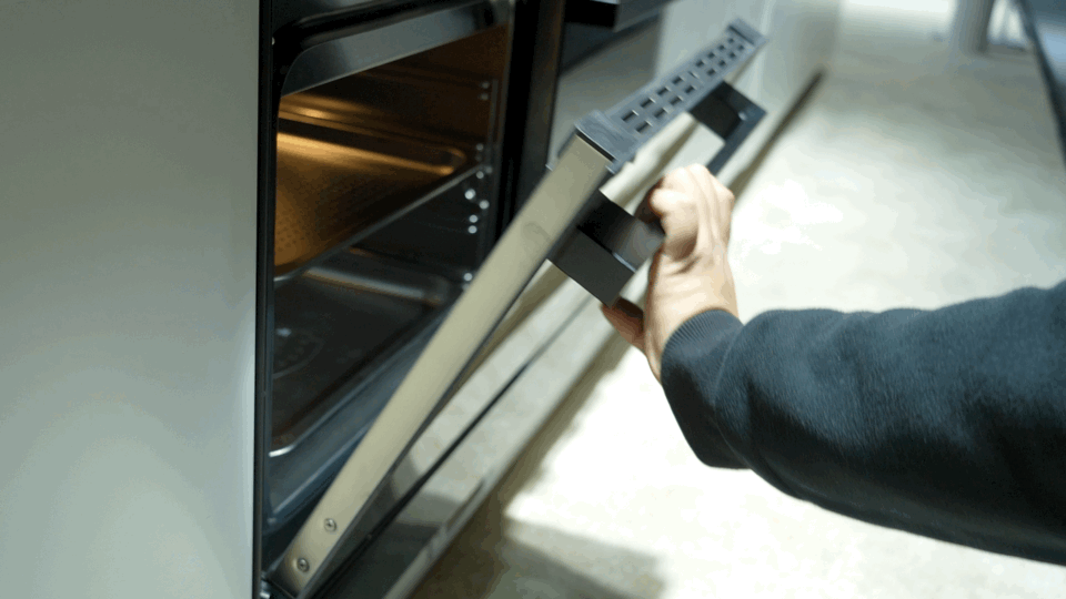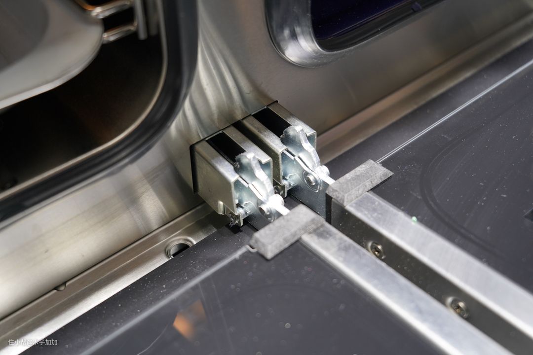 蒸箱与烤箱门的铰链提供了非常舒服的阻尼感,静音缓冲效果很好,开关门都十分顺畅。