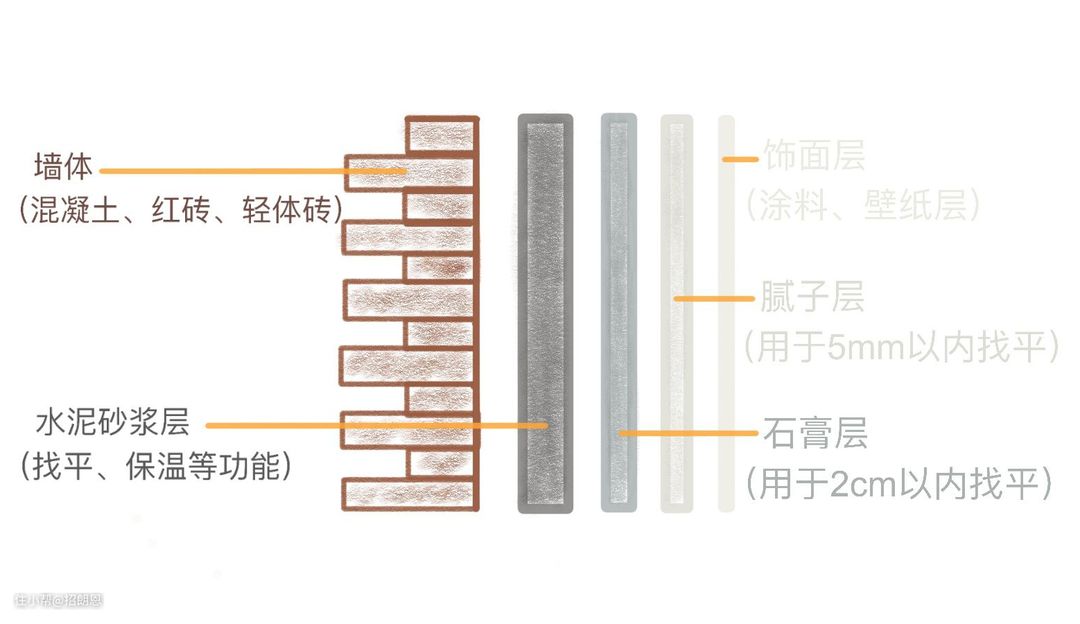从墙体的构造来看,我们可以发现,墙体每一个部分都承担着不同的作用,水泥砂浆、石膏层、腻子层任何一个部分出现问题,都很有可能影响后续的施工。