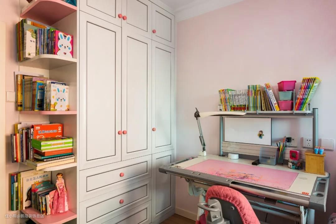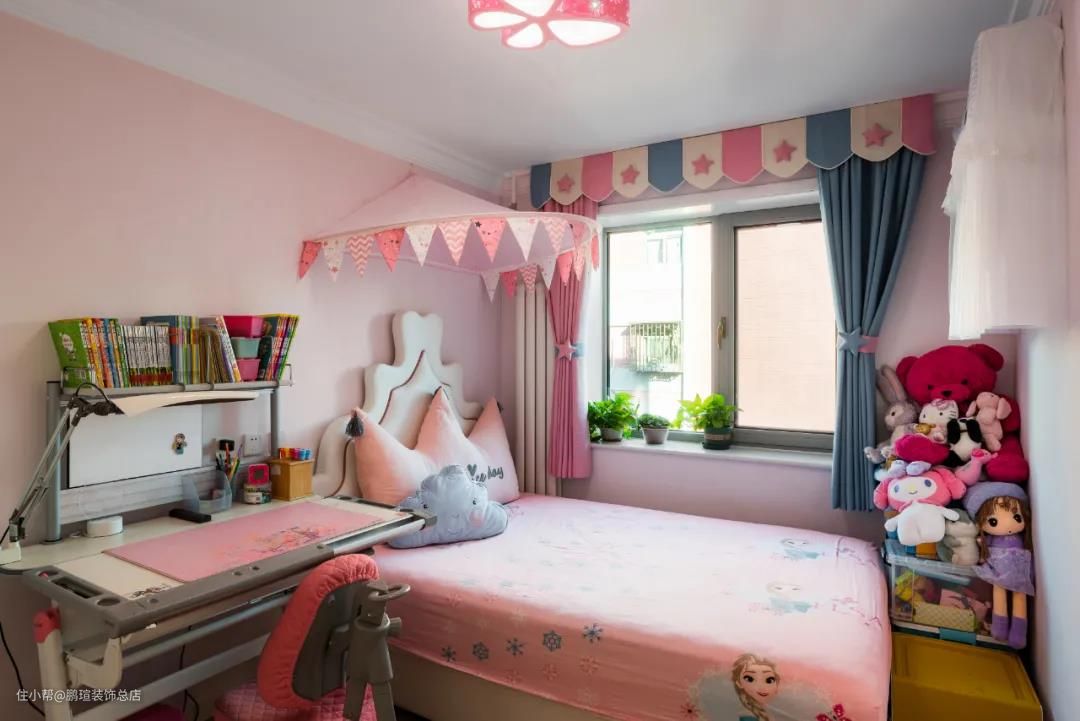代表着甜美、娇羞、浪漫、温柔的粉色,自然是小公主儿童房的首选。床头安装可拆卸蚊帐,夏天告别毒蚊香。