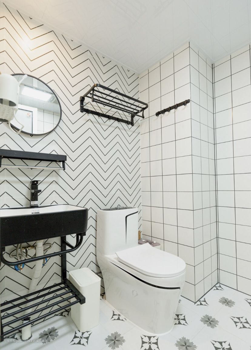白色小砖的竖向铺贴方式,让这个狭小的空间视觉看起来更高耸,大气。