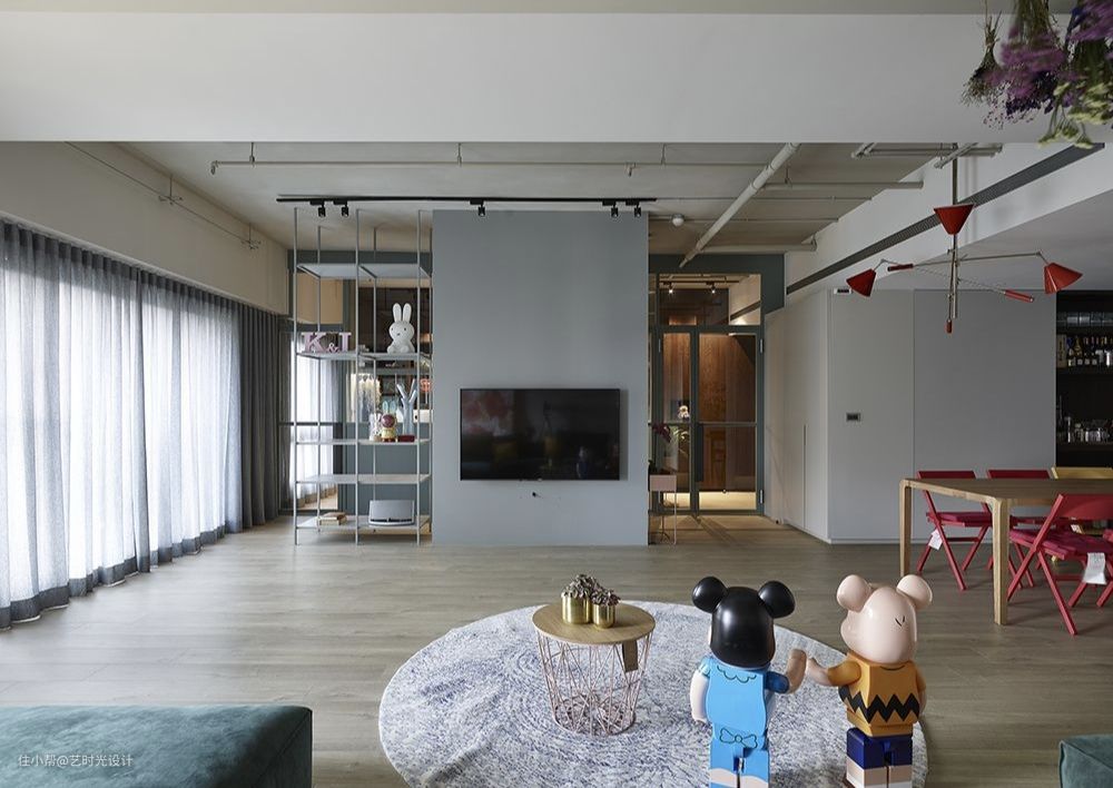 公领域设计删去一房放大客、餐厅格局,再以开放主墙与迂回动线让客厅风景更有变化。另外,因屋主收藏许多奇趣文创品,除增加展示柜,空间也以无彩色为主轴,让屋主以收藏自由挥洒上色。