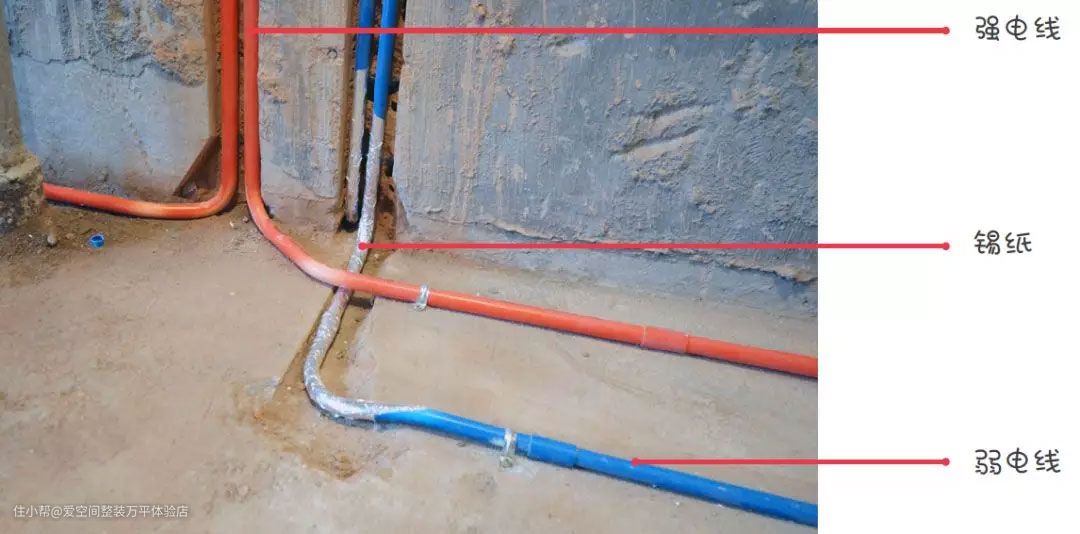 还要尽量避免强弱电管交叉的情况。如果不得不交叉,需要在交叉处裹上铝箔纸来防干扰。