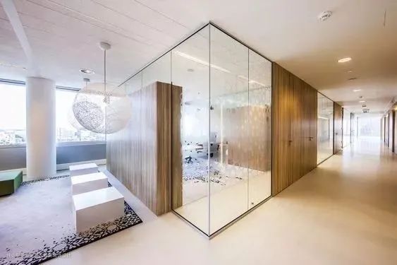 纯玻璃隔断是指用于分割空间的玻璃构件并无明显的“框”,整个面均为玻璃饰面。