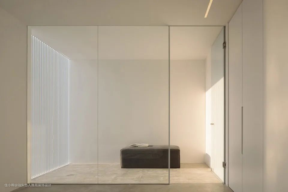 b、纯玻璃隔断造型简洁,自带颜值,增强高级感,更适合当下流行的极简风、诧寂风等;