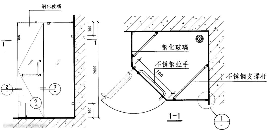 ① 淋浴隔断、浴缸隔断玻璃应使用符合总说明表1规定的安全玻璃。