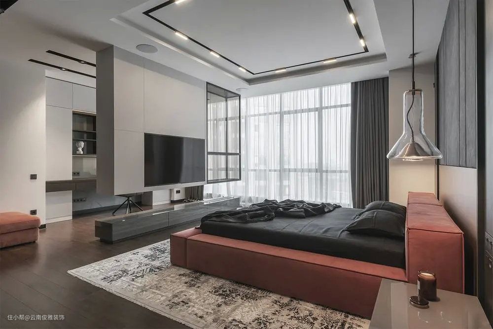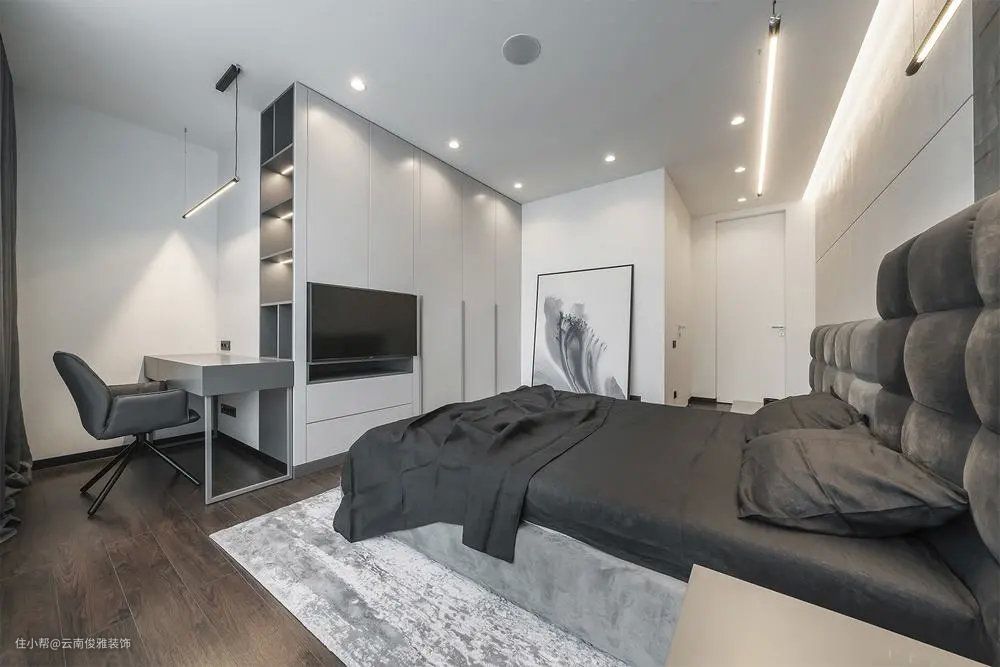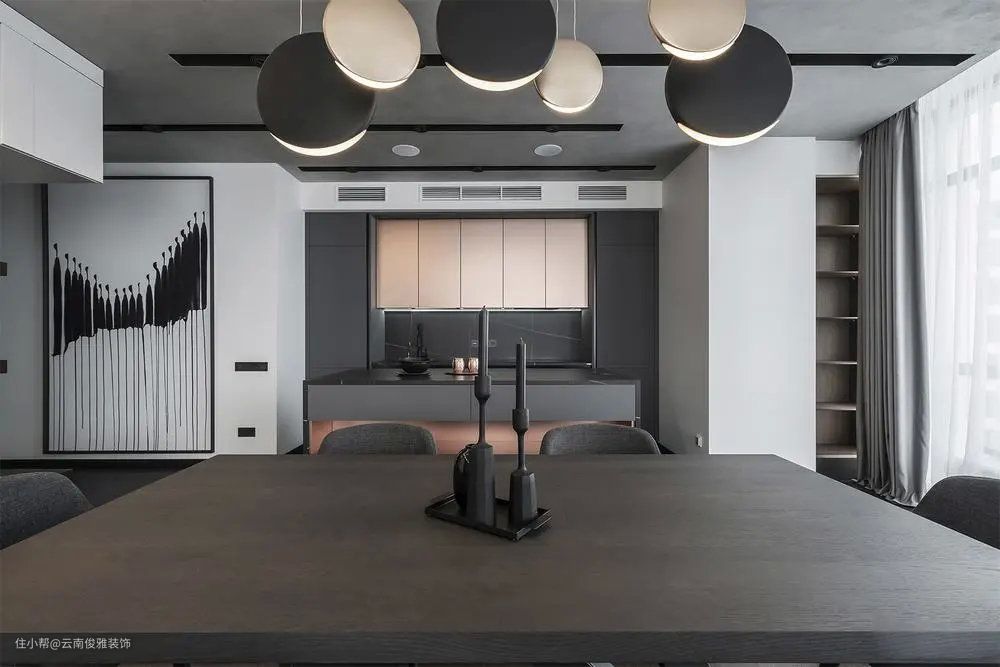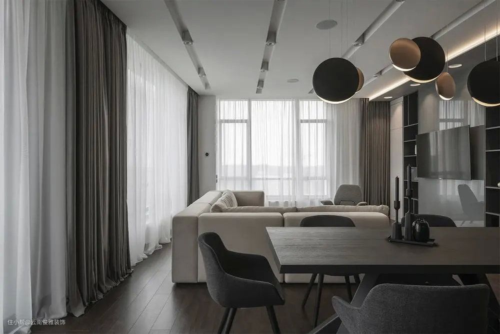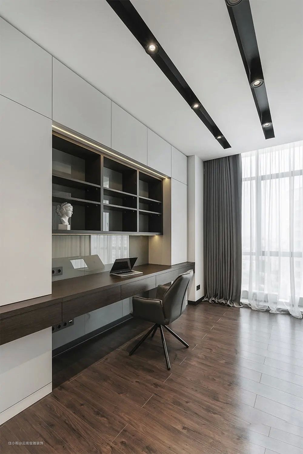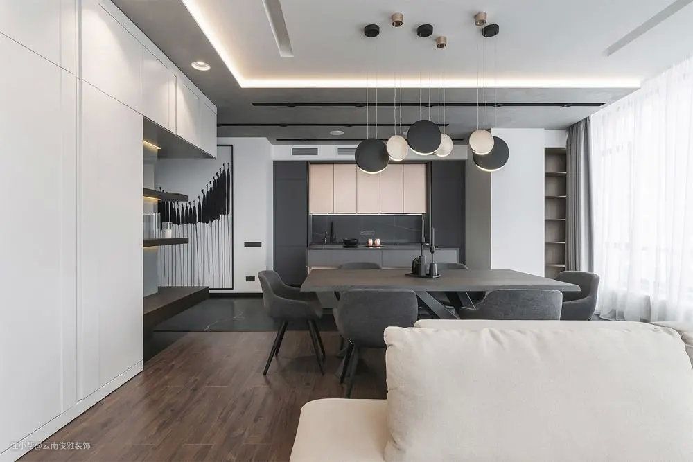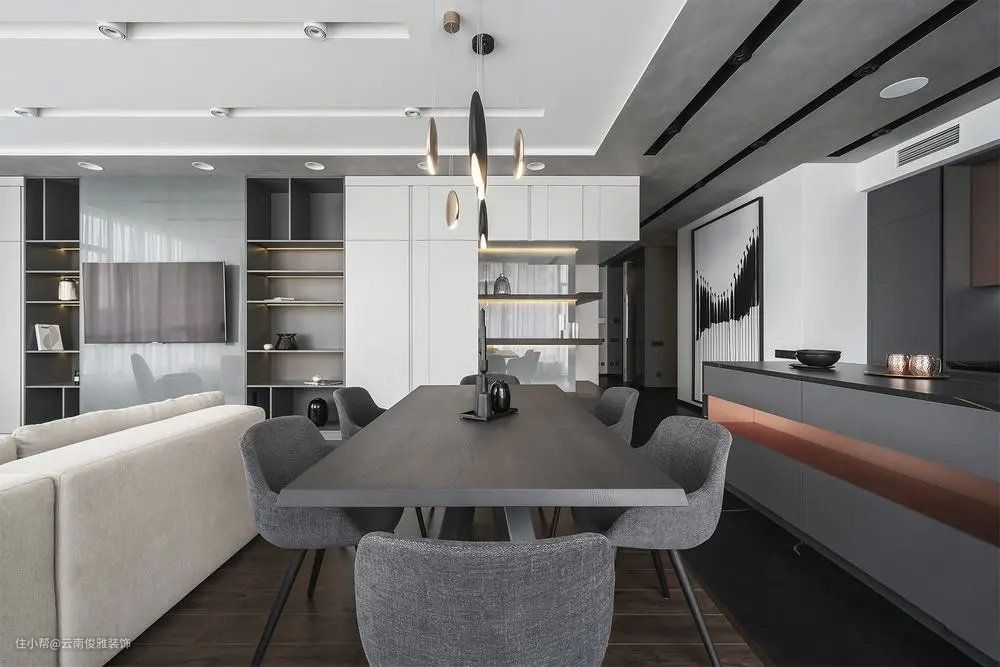 170㎡现代轻奢风格装修,当大横厅遇上落地窗云南俊雅装饰2021-04-01今天一起来欣赏一组充满精英时尚感的170平现代轻奢风格新房装修案例。落地窗+大横厅,采光绝了!客餐厅一边的收纳柜,大气实用,一起往下看吧!客餐厅过道卧室办公区卫生间次卧