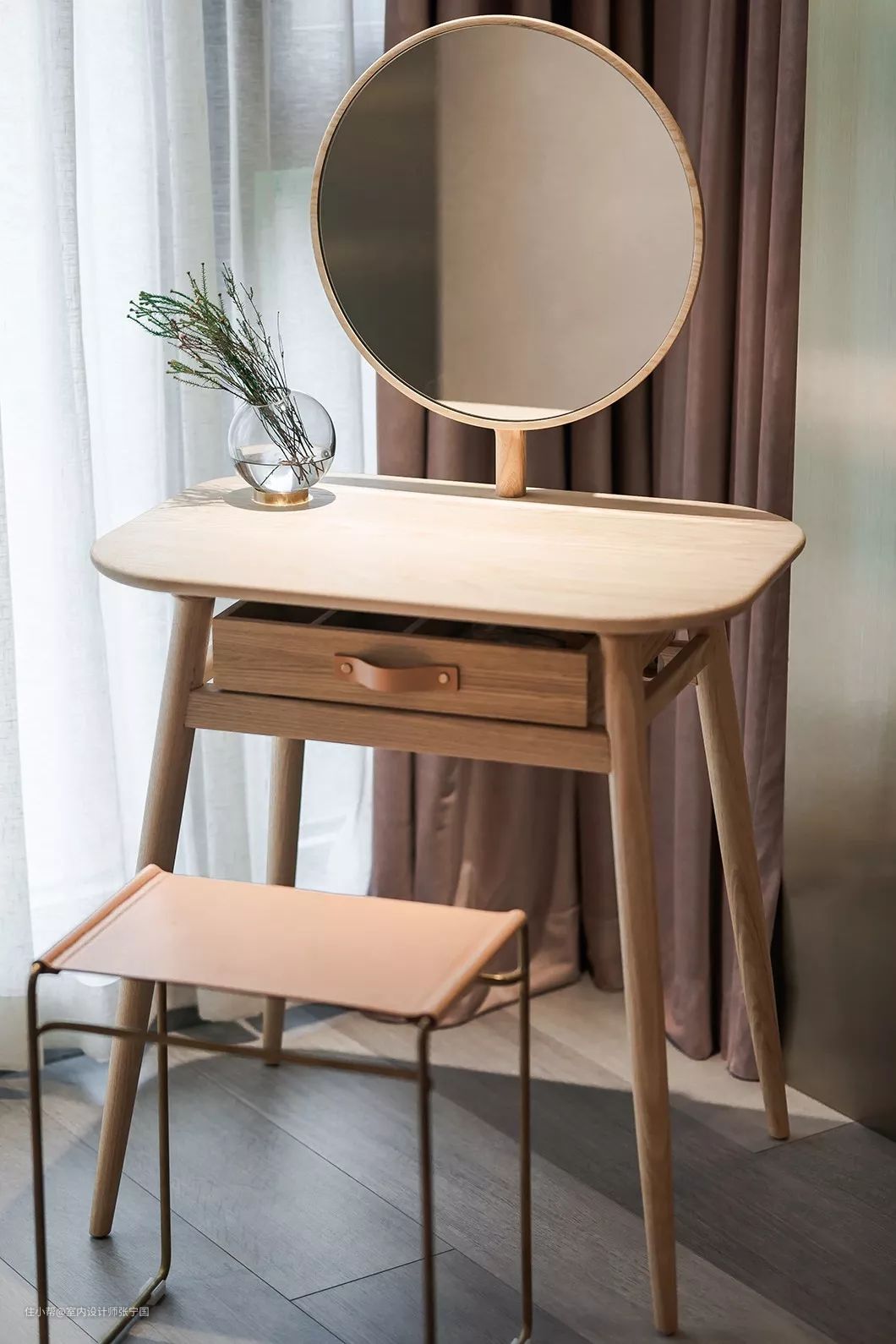 推拉门上还嵌着一面黄铜勾边的镜子,出门前作为穿衣镜相当实用。