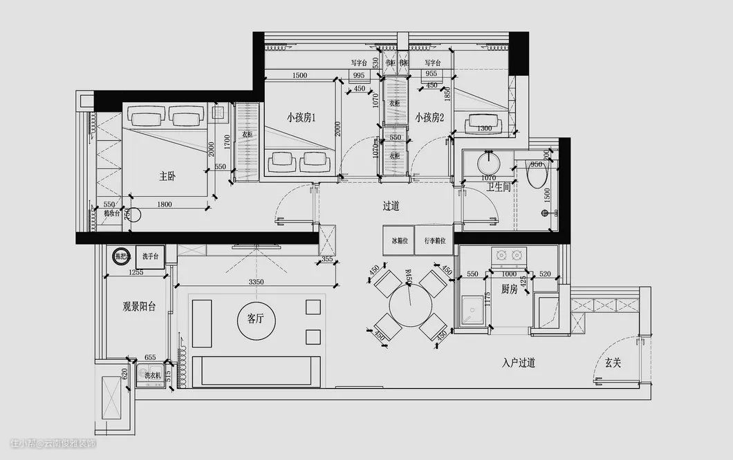 电视墙侧面位置做成开放式的书架,空间得到了巧妙的利用。过道靠餐厅的墙面空间也得到了充分的利用。在镜面与书架的装扮下,过道也变得宽敞有趣起来。