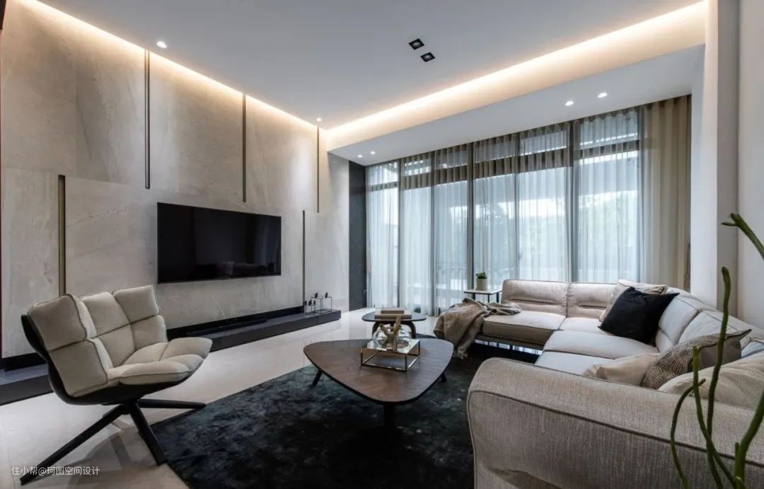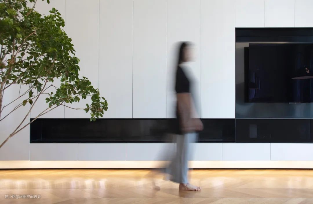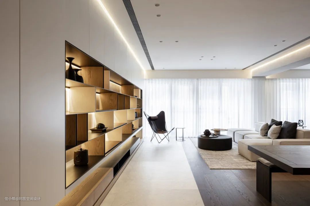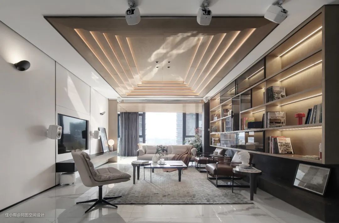- 吊顶上设计灯带,可以增加顶部的层次感,通过光线还能形成一种虚实对比,产生灵动的视觉效果。