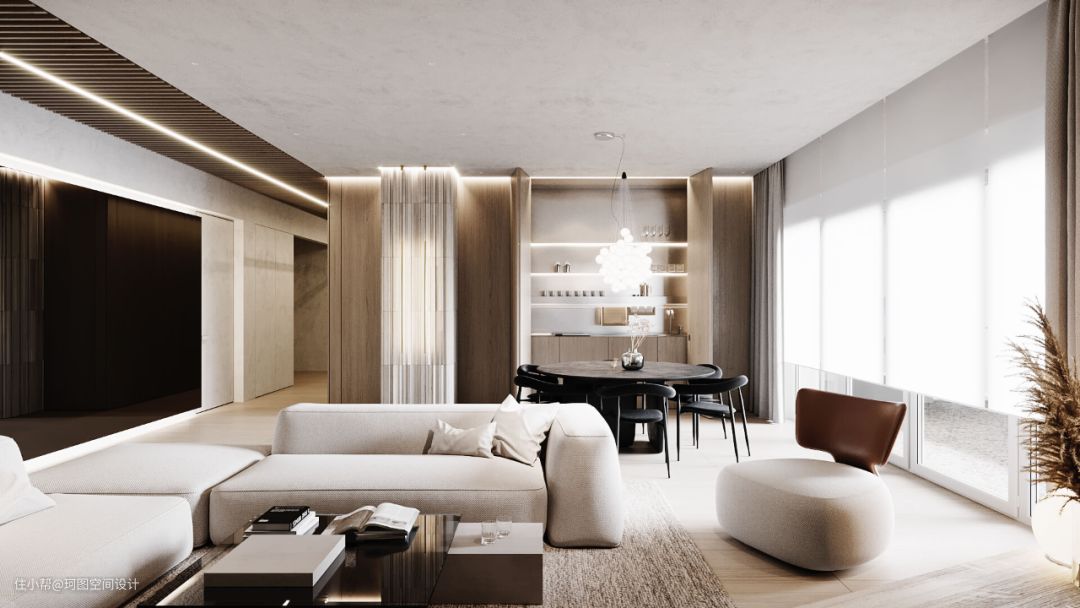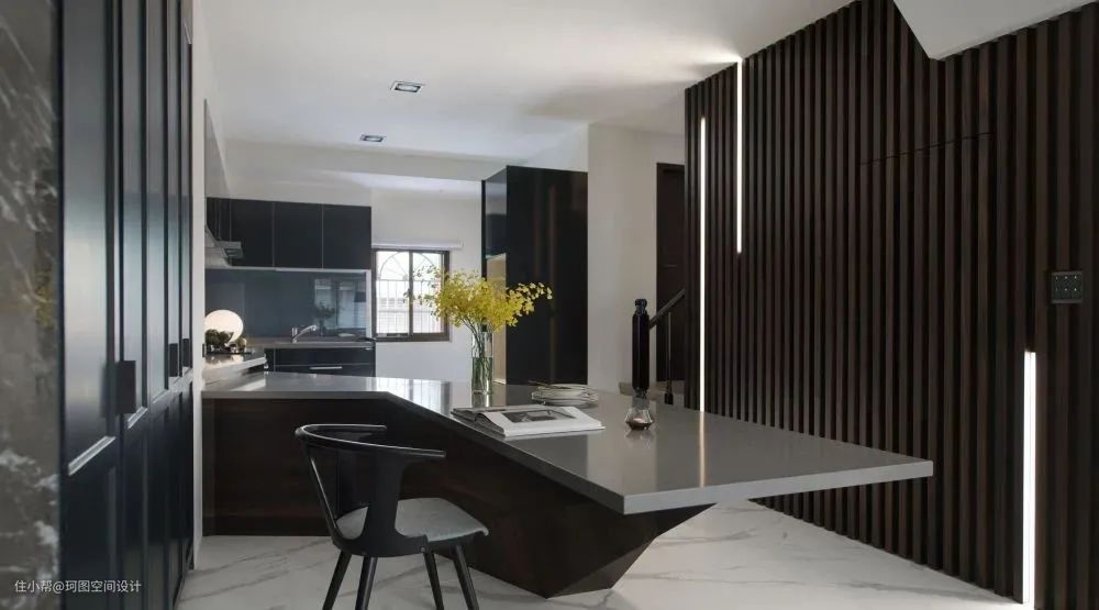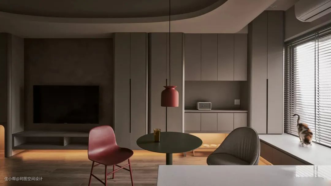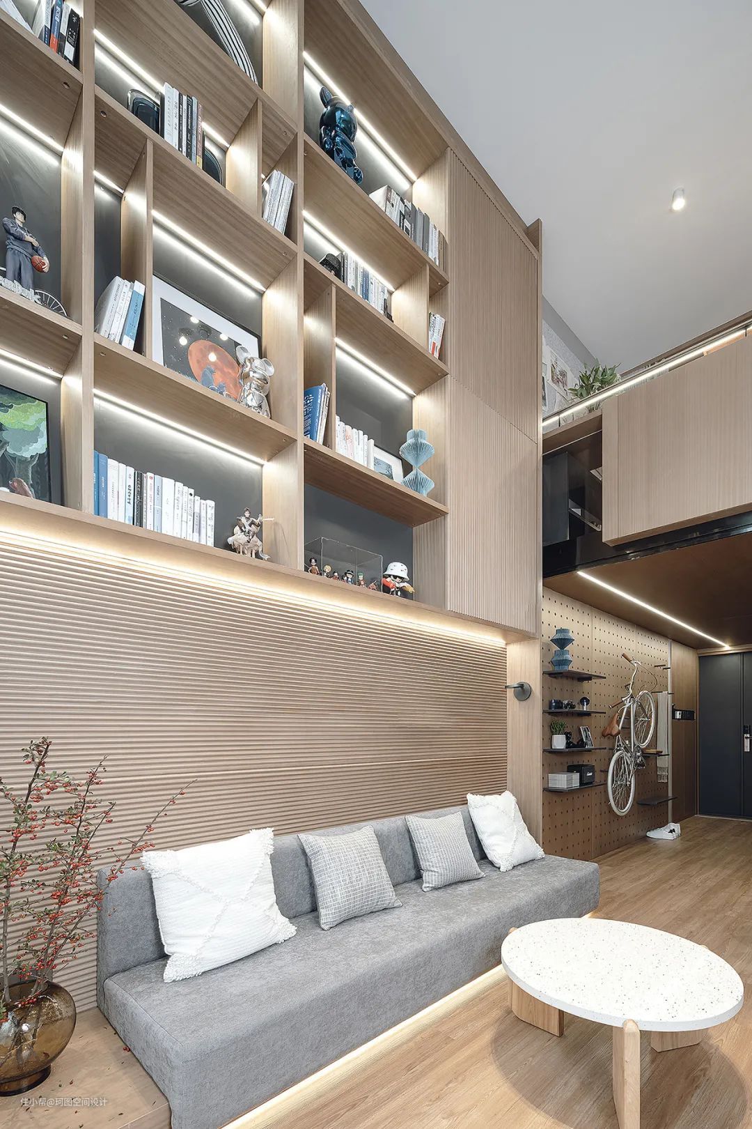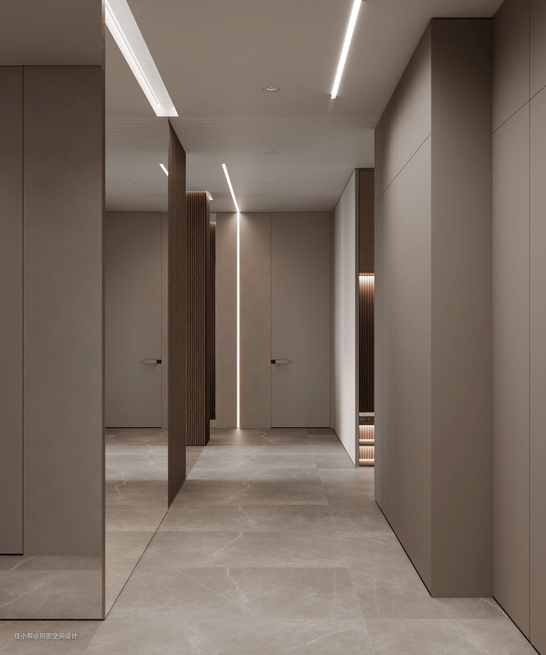 - 吊顶上设计灯带,可以增加顶部的层次感,通过光线还能形成一种虚实对比,产生灵动的视觉效果。