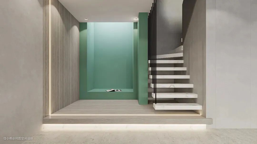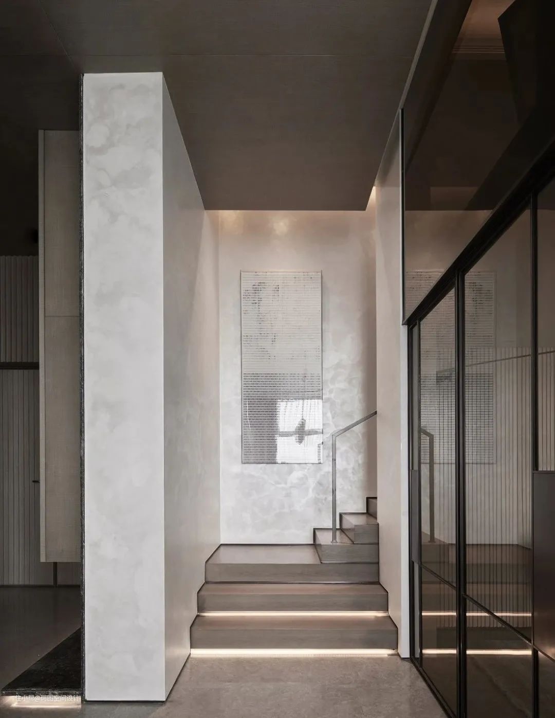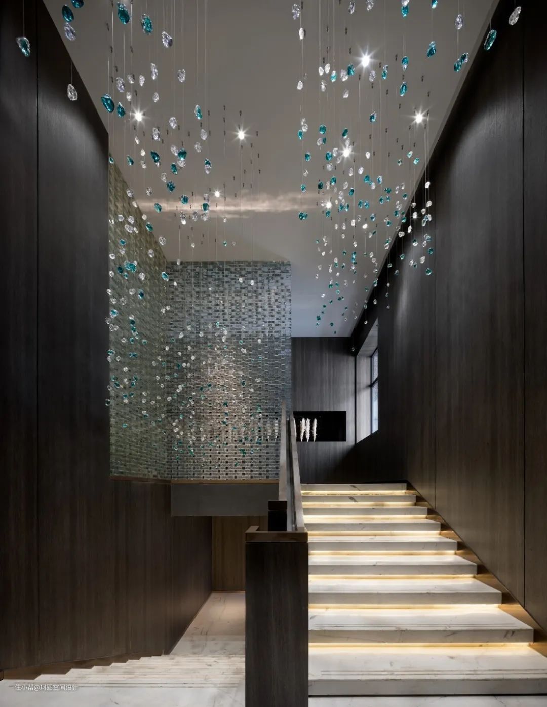 - 对于复式、跃层、别墅等多处户型来说,都会涉及到楼梯,而楼梯,也是绝妙的灯线设计点,看图: