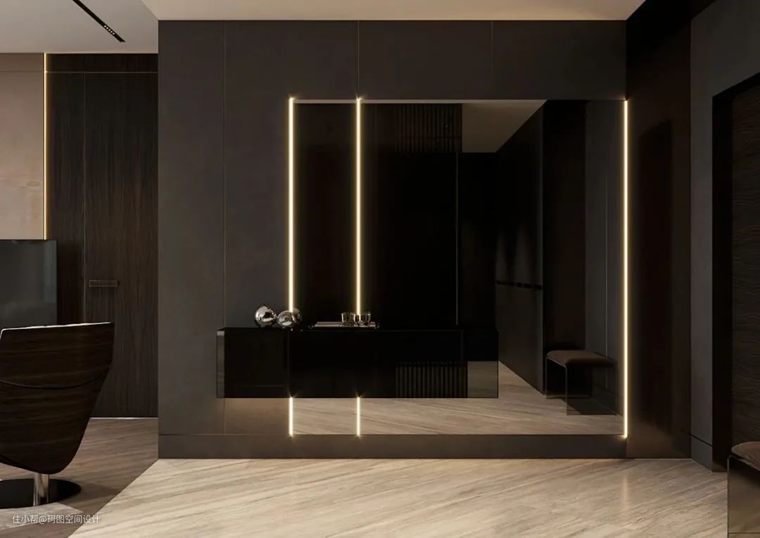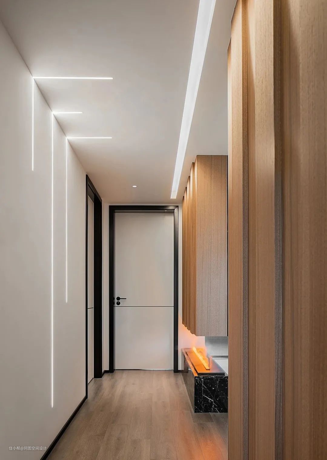 - 当然,灯线在墙面上的存在不仅仅是背景墙,只要你想任何一个墙面空间都可以通过灯线来优化视觉和装饰效果: