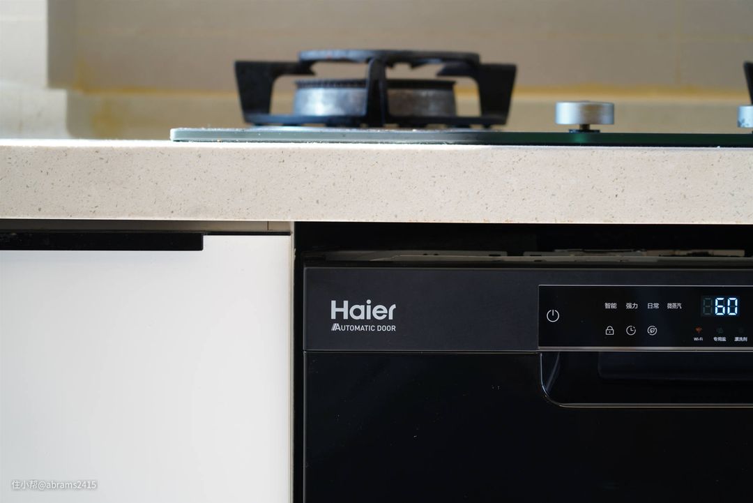 ▲之前评测的这台海尔13套独嵌两用EYW13028BKTU1消毒型洗碗机就配备了自动开门技术