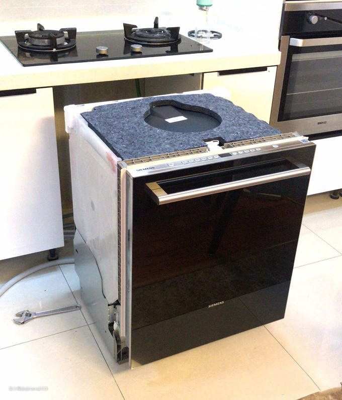 ▲为适应中式厨房台面高度,目前国内大多数独嵌两用洗碗机掀掉顶盖为775mm高