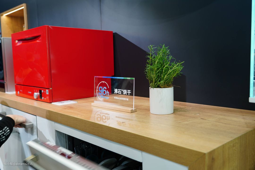 ▲这次在BOSCH展位看到了沸石烘干方式(英文称Zeolith 晶蕾)。目前博世、西门子,甚至是高端大气全封闭VIP展位的GAGGENAU嘉格纳,其中高端机型都用了晶蕾烘干技术