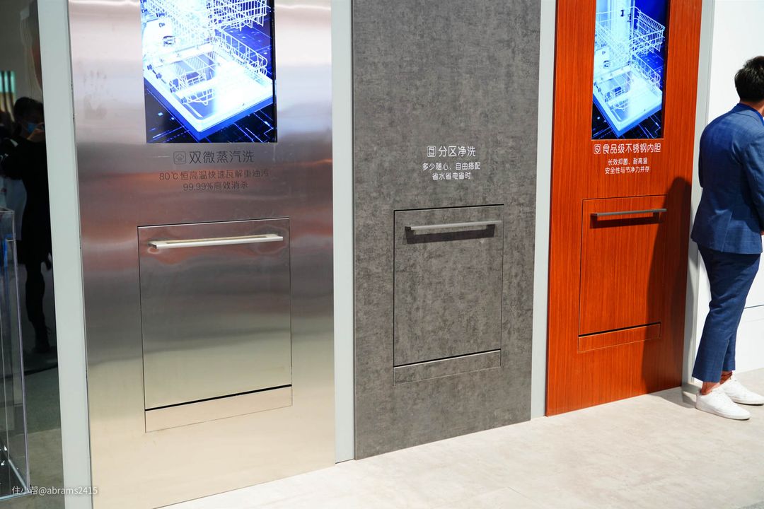 这次参会我主要想了解各品牌洗碗机的新品和未来发展方向。参观了比如海尔、西门子、AEG、惠而浦、华帝等品牌的洗碗机。