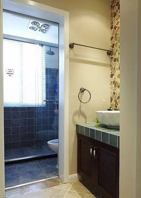 二式分离,常见的是把洗漱台外移,卫生间内保留马桶和淋浴。这样可以有效的利用一些其他空间。