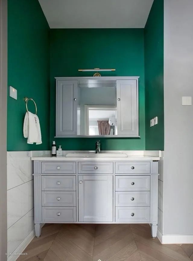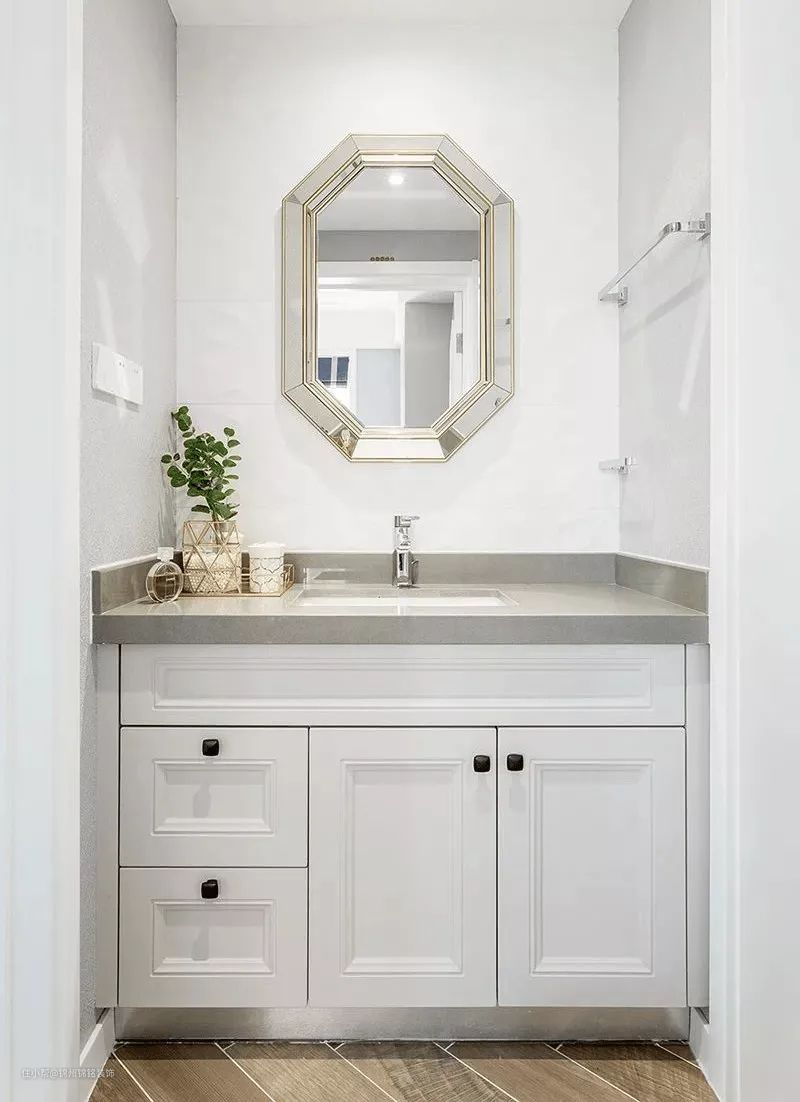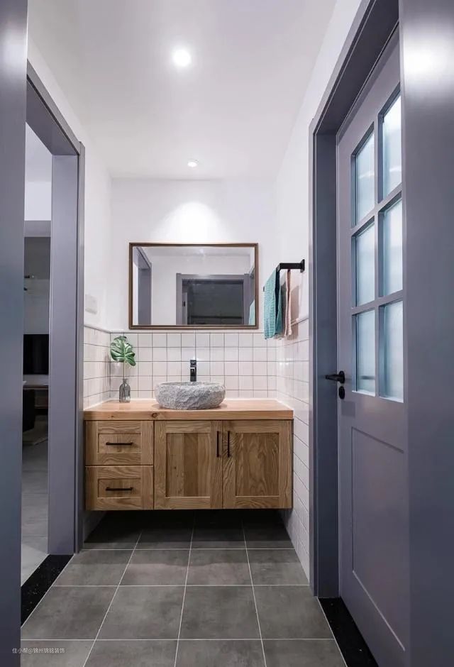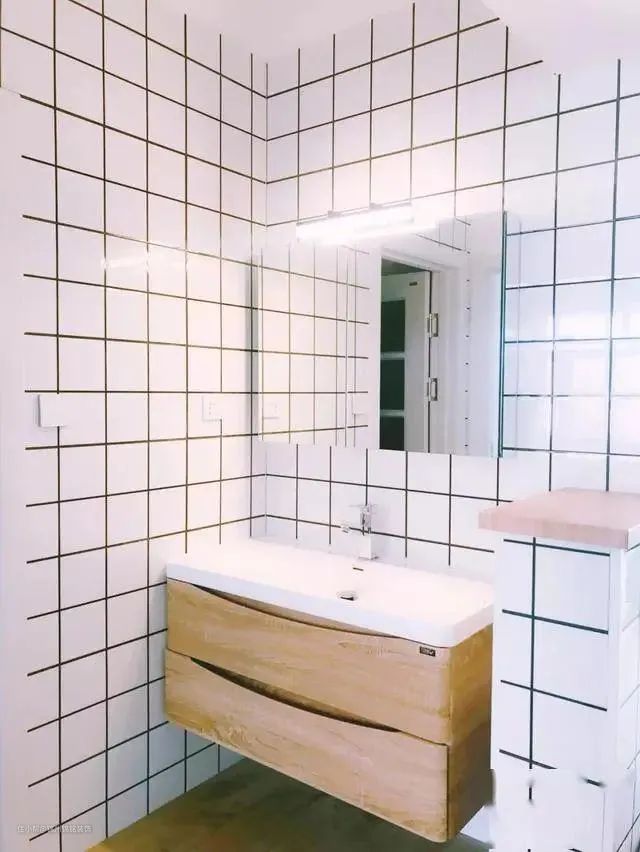 ■ 选材。洗手台也是一个频繁用水的区域,所以选材的时候还是需要注意选择一些有防水功能的材质,比如墙面可以选择防水的墙面漆、瓷砖等等,地面的话可以在洗手台区域铺设瓷砖。