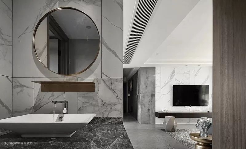 ■ 提升空间颜值。碍于水汽的问题,很多卫生间只能选择最防潮的瓷砖墙面,把洗手台做外移之后,墙面方案不再局限于瓷砖范围,有了更多的选择,颜值的上升空间也是直线飙升。