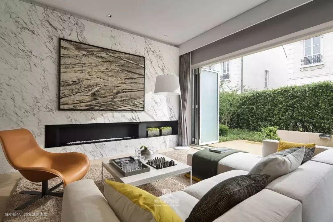 与推拉门设计相比,折叠门更能模糊室内外的界限,扩大客厅空间,让空间隔而不断,使用起来也非常方便~~