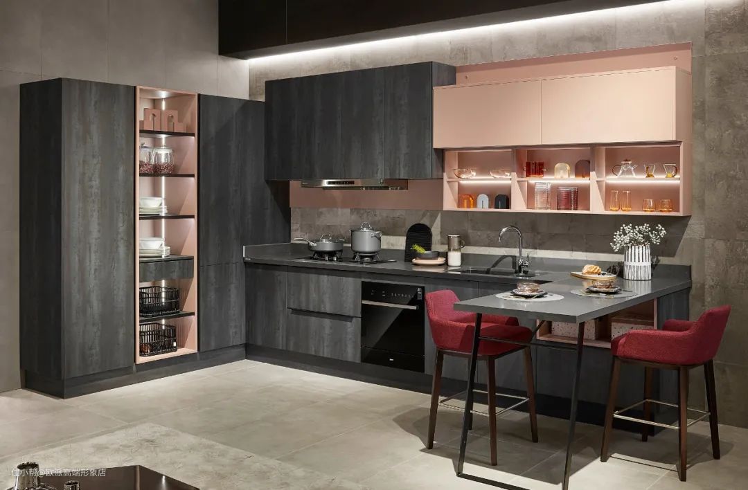 细腻的木纹门板质感自然,简约的配色让厨房看起来更加纯净优雅,彰显了厨房格调。金属灰橡门板的低调,透露出几分干练的气息,板材间彼此相称,充分体现了现代风厨房的高级感。