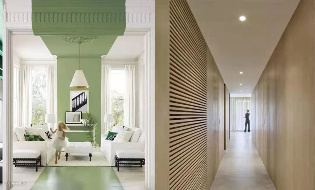 如何将背景墙与天花板涂成相同的深色,而将侧壁涂成浅色,会使空间显得更宽敞,这种手法广泛被用解决走廊或狭窄房间的问题。而如果相反的,将两个相对的侧墙涂成深色,背景墙和天花板保留浅色,这样可以使空间在视觉上变窄,能够有效改善尺寸不均衡房间的协调感。