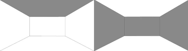 空间中天花的高度直接干扰了使用者对于空间的亲近与疏离感。对于相对私密空间,如卧室、会客厅等,需要小尺度的视觉感受来增进使用者之间的亲密感,除了直接降低天花高度之外可考虑让天花板采用比墙壁更深的涂料颜色来实现,而对于公寓,活动室等空间则恰恰相反,需要通过将墙壁涂成深色而天花涂成浅色的方式来避免由天花板较低带来的幽闭感。