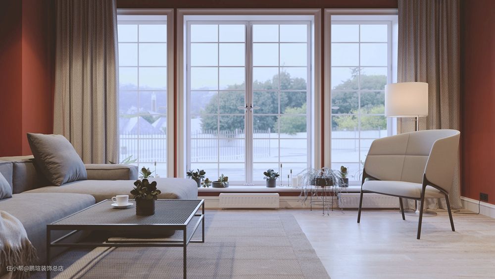 客厅采用了我最喜欢的整面落地窗,大片光线肆意洒入,很敞亮,坐在沙发上便可远眺外面的风景,视野非常开阔,底部打造了长条墙角柜,我摆放了一些小盆栽,在这里可以更好地吸收阳光,生机盎然。