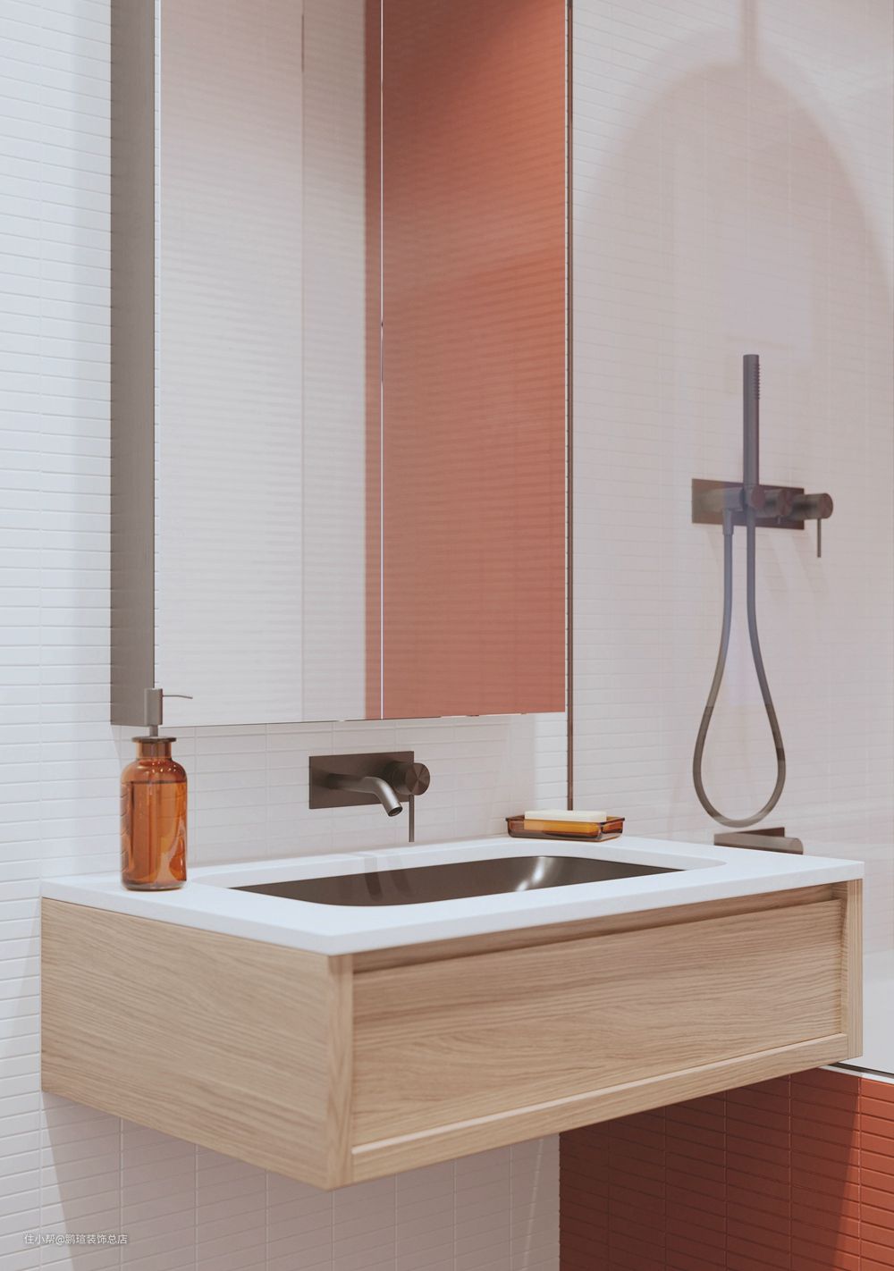 洗漱台方便实用,做了吊空设计,这样让空间看起来不会显得很拥挤。