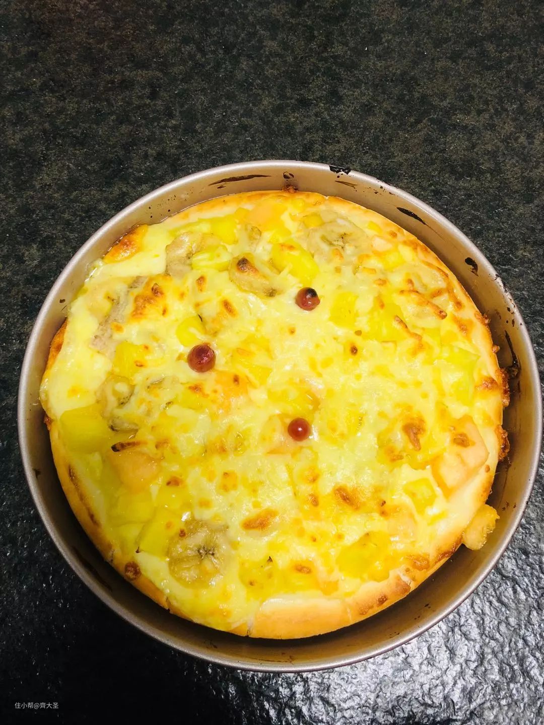 放入预热好的机器,选择220℃,20min,时间到会有蜂鸣提示,开箱取出,看上去上火均匀,并未烤焦,口感鲜嫩,对于初次尝试,成就感不错。总共耗时不超过40分钟,即可在家DIY一款水果披萨,原来烘焙并没有你想象的那么难。