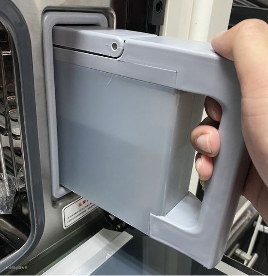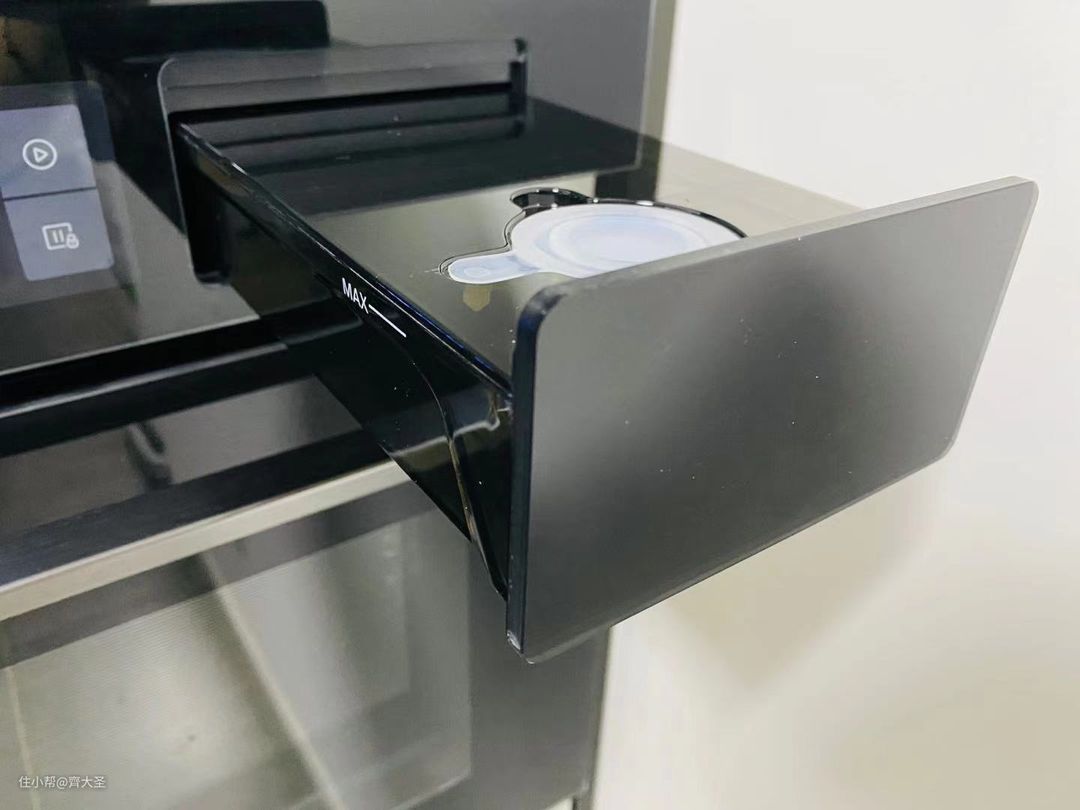 操作也相当简单,在操作屏幕上进行一键按下,水箱就会自己滑出,这样的设计可以让水箱在长时间使用的情况下也不会出现松动或不稳定,保证了蒸烤箱整体的使用寿命。
