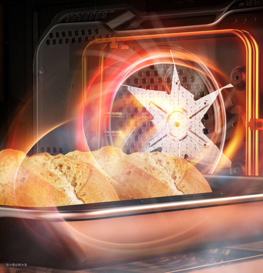 但是,因为有了热风循环之后,烤箱内部空气流动速度快,就意味着食物表面的水分更容易流失,烤有一些产品的时候,会因此而出现表面干裂等问题。为了弥补这一问题,以美的为例,会在高温烤脆表皮的同时,以轻柔蒸汽形成保温层,锁止内层水分,造就外焦里嫩的口感,