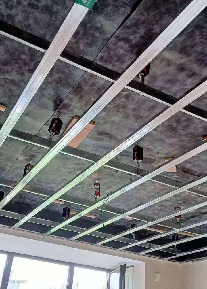 1、先用橡塑减震板粘在顶面(或吊顶用减震钩);
