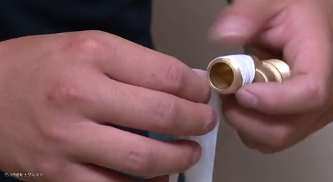 - 2、将两曲脚接头缠好生料带,生料带不易过厚以防塞不进水源管。