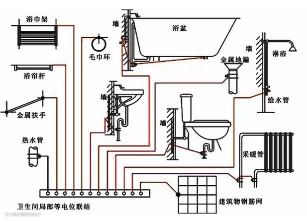 - 等电位联结这个装置还有一个用途:洗澡用的热水多数是用热水器提供的,也需要用到电,而热水器的功率非常大,若花洒出问题漏水,更容易导致触电,有这个装置就会安全很多。