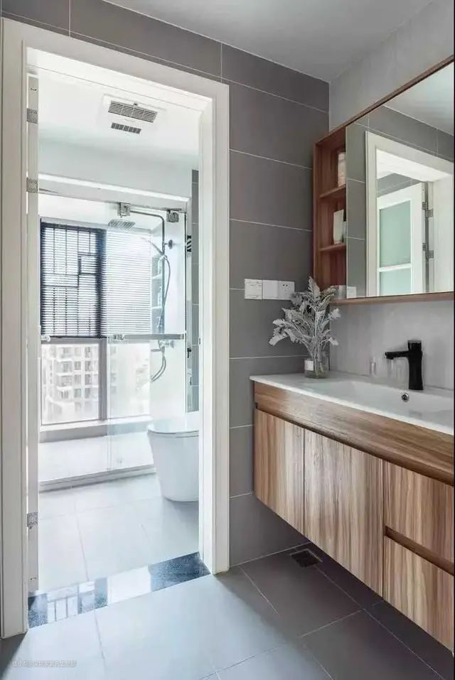 16、卫生间一定要尽可能地做到双分离(即洗漱台挪出卫浴门外),这样不仅实现了干湿分区,而且如厕和洗脸刷牙两不耽误,使用效率特别高。