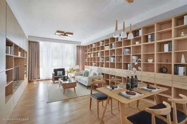 7、如果老人不同住,自己对看电视的需求又不大,可以考虑“去客厅化”设计,因为我发现很多的城市家庭,几乎没有亲朋好友来串门,而且自己又不看电视,电视墙就成为了积灰的摆设,其实这个时候如果你爱学习,可以打造一面书墙,或者打造成亲子空间,效果无疑实用的多,至于影音方面的需求你可以装投影仪,也可以选择不装,这里只是提供一个思路,具体要大家去思考;