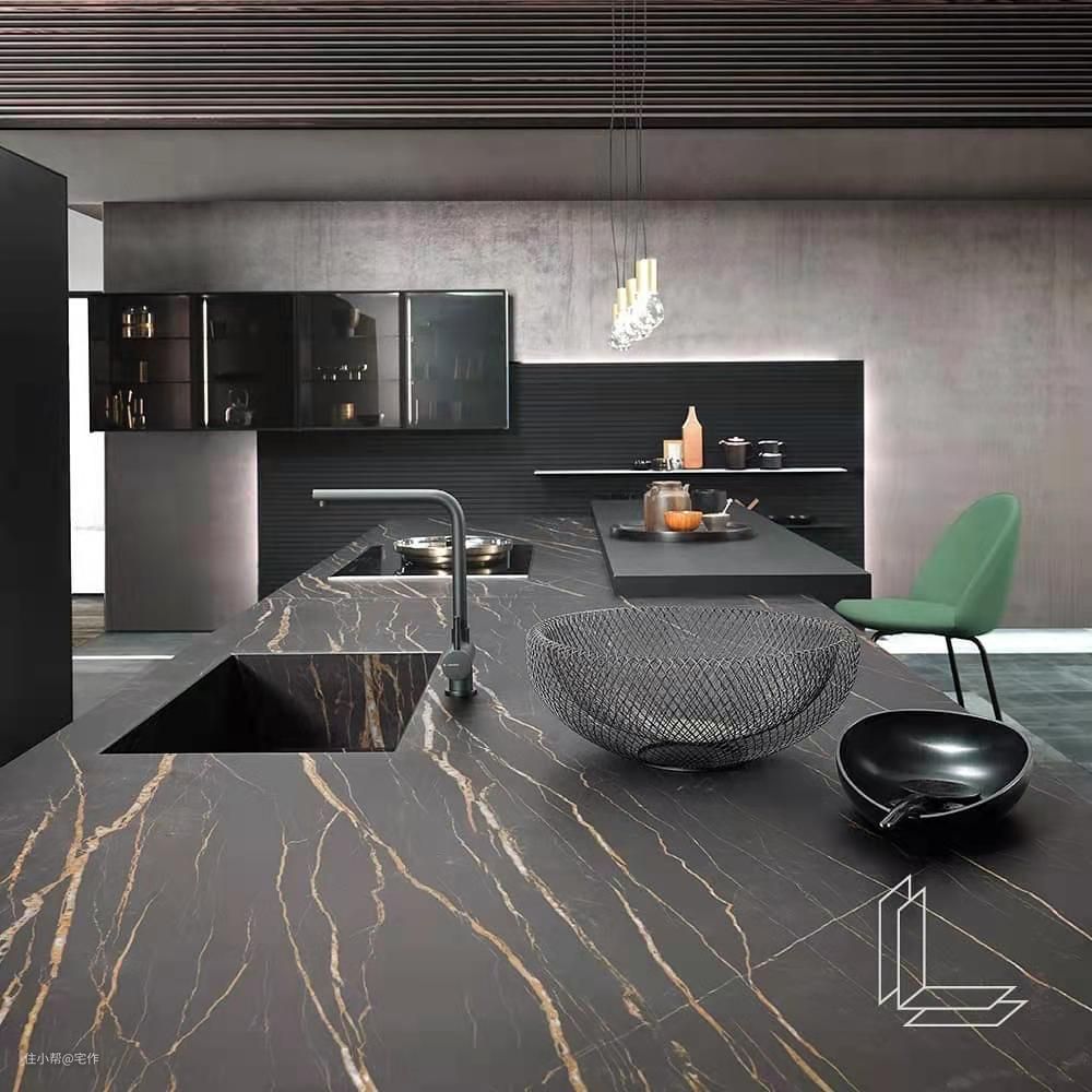 再说下岩板厚度有12mm,主要做台面;6mm的做背景墙;3mm的做柜门等
