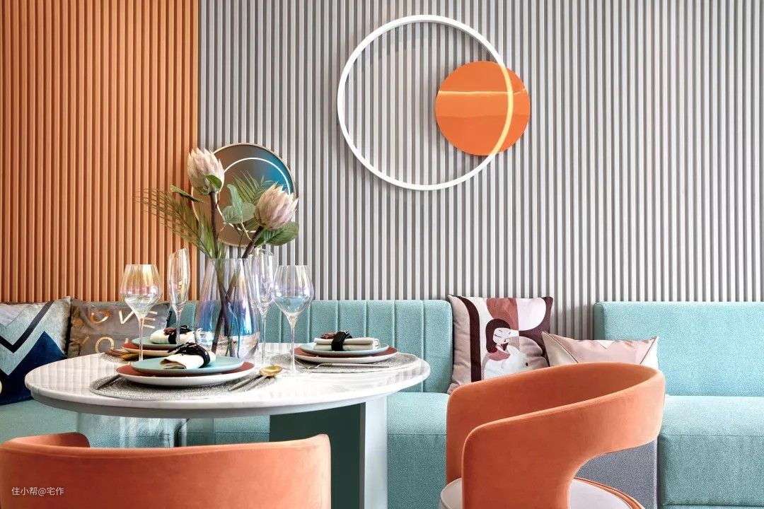 蓝色的沙发,清新而又出挑,让整个空间更加广阔,更有一眼就望见更多美好的可能。因橙色的点缀而更具生机,不需要铺满整个房间,只要一小色块的跃动,便能为家带来新鲜活力让家在矜持和热情中游走。它就像是还带着香气的新鲜橙果,充满阳光的活力,又像是鲜榨的橙汁,给予你一天的精力。