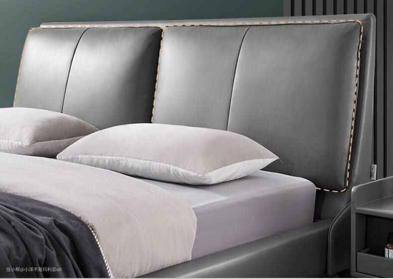 以前看都市摩登电视剧,我常常感叹,人家的卧室怎么能布置得这么高级。直到看到了这款真皮双人床,我相信把他放进卧室里这种高级感就实现了一半。整个床头表面都使用了头层牛皮材质,不仅耐磨性好,夏天使用也更加干爽透气。床头靠包采用悬浮设计,从视觉上营造出一种漂浮感,内置柔弹海绵,在带来一定包裹感的同时还能提供相当不错的支撑力,非常适合追求品质的家庭。