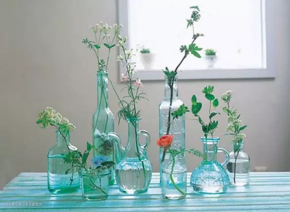 淘几盆十几元的小绿植、利用旧玻璃瓶插些水培花草,随意的摆在房间的角落里,立马让房间充满生机。