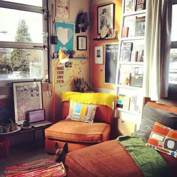如果你喜欢阅读,再小的房间,都应该布置出这样一处温馨的阅读角。盘腿坐在一张单人小沙发上,为自己开一盏暖色的灯。