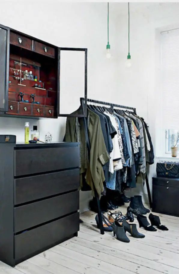 一个大小合理的落地衣架,放在玄关或者卧室,不再把衣服丢的到处都是,家中变得更加整洁清爽。