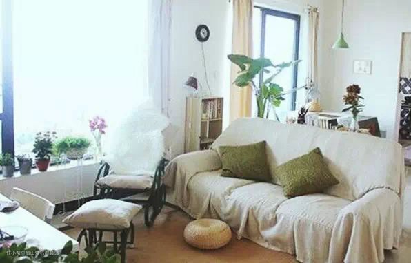 沙发装饰后:米白色椅套让沙发变得更加文艺、清新。