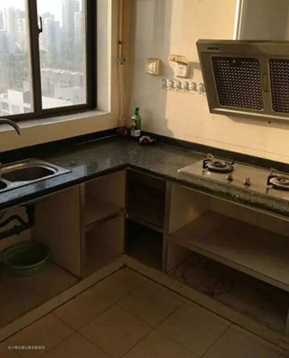 厨房装饰前:色彩单调,收纳空间缺少遮挡,不够雅观。