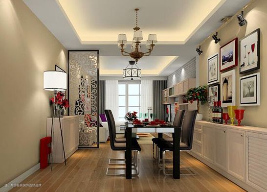 古典欧式的客餐厅设计很有魅力,欧式风格的家居设计呈现出来的是宽敞的空间,屏风的隔断效果是很好的,客厅和餐厅的活动空间也足够大,地板的选择也恰到好处,更具有质感,脚感也是相当不错的,颜色和图案显得华丽而沉稳。
