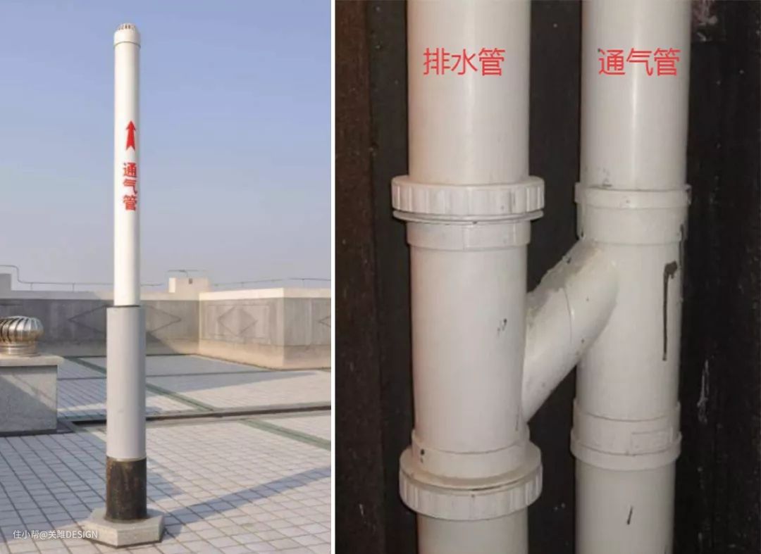 c、通气系统:建筑内部排水管内是水气两相流,为防止因气压波动造成的水封破坏使有毒气体进入室内,而设置的通气系统。主要是为了让排水管和大气相通,稳定排水管的气压波动,使水流通畅。