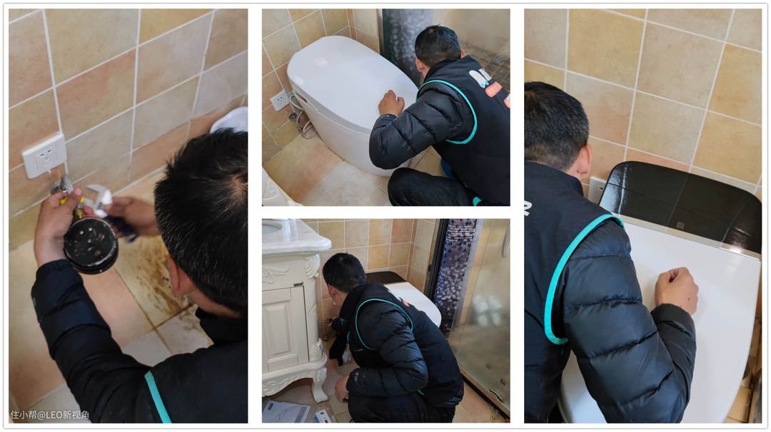 大白智能马桶是包安装的,在快递还在路上的时候,安装师傅已经提前预约了。师傅过来拆除旧马桶,然后安装新马桶,整个过程还是非常专业的,因为马桶安装位置并不是很宽裕,而且旁边有一个地漏,地面并不平,师傅还做了垫平,做事还说相当仔细了。